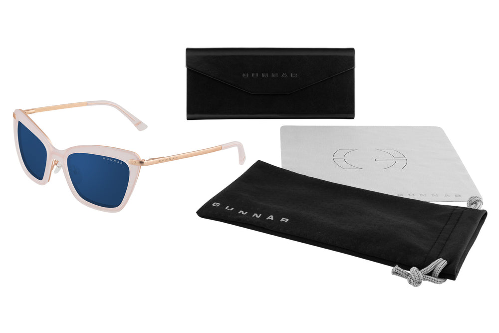 Glam up your video conference look with these colorful cat-eye frames. Inspired by GUNNAR's Nordic technology roots, Anna forms an elegant part of our Kista Collection. Featuring a polymerframe with a hand-polished, lustrous nish, Anna comes in three unique colorways. Designed with the benets of patented GUNNAR lens technology, this frame features adjustable nosepads for added comfort. Available in the GUNNAR's most popular lens tints, Amber and Clear, Anna provides the industry best in digital eye strain and blue light blocking.
