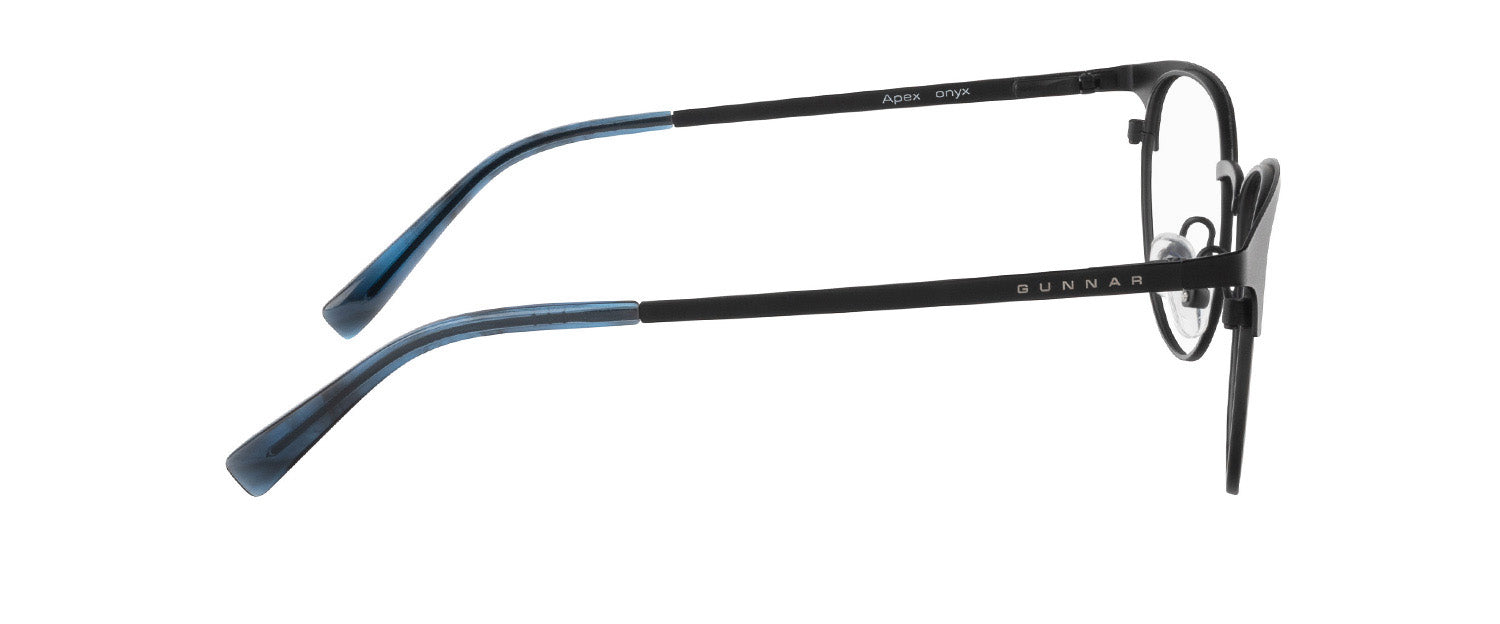 Introducing ‘Apex’, a fashionable new style of computer glasses designed for digital screen users who like a bit of style! With a durable stainless steel frame material and marble accented acetate temple tips, these GUNNAR computer glasses look sharp while keeping your eyes sharper. Apex features GUNNAR’s superior lens technology to combat digital eye strain and block blue light, complete with anti glare and smudge resistant lens coatings.