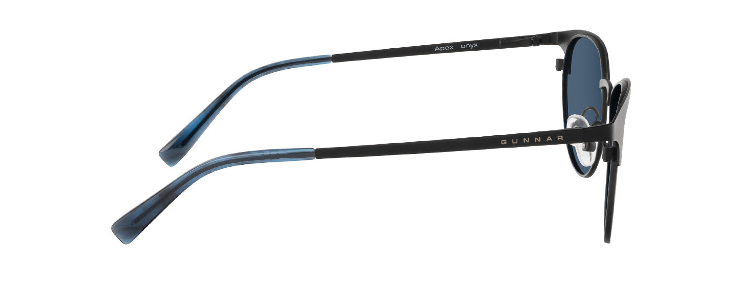 Introducing ‘Apex’, a fashionable new style of computer glasses designed for digital screen users who like a bit of style! With a durable stainless steel frame material and marble accented acetate temple tips, these GUNNAR computer glasses look sharp while keeping your eyes sharper. Apex features GUNNAR’s superior lens technology to combat digital eye strain and block blue light, complete with anti glare and smudge resistant lens coatings.