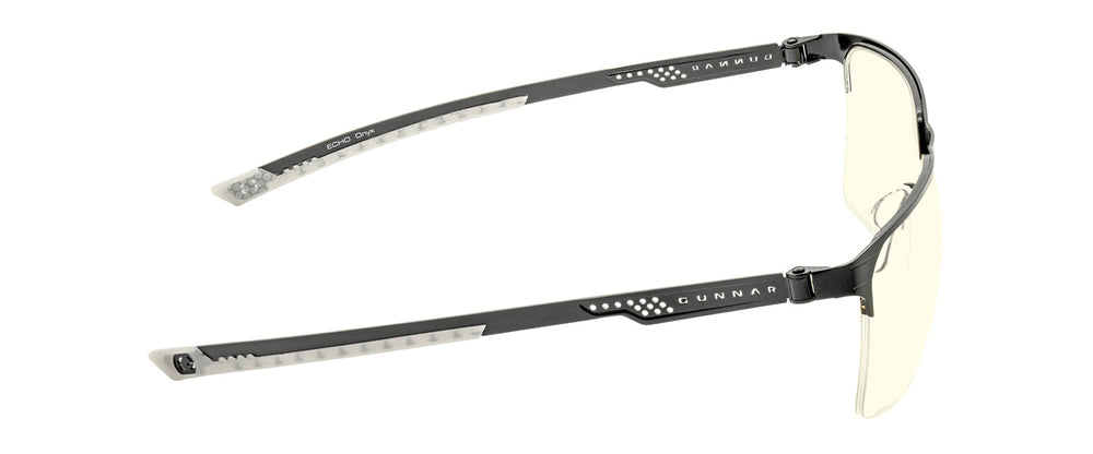 Climb the leaderboards in style with Echo. Designed for elite performance, these high-wrap, square half-rimless frames combine sleek stainless-steel construction with lightweight durability, making them perfect for marathon streams and intense gaming sessions on the latest competitive game titles. Featuring unique perforated temples and sturdy hinges with 180-degree flexibility, the Echo glasses deliver functionality and flair, embodying the cutting-edge look of the eSports scene. GUNNAR’s signature Amber tint and patented Focus lens technology reduce eye strain, block harmful blue light, and enhance visual clarity to give you the competitive edge you need to dominate the game.