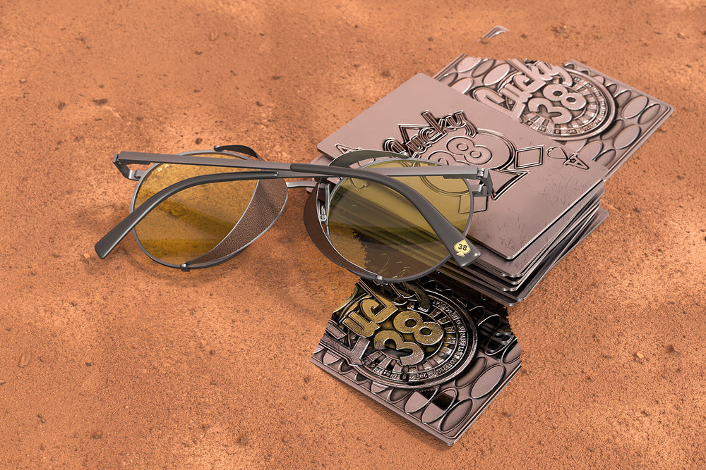 Step into the Mojave’s most iconic high-roller haven with the Fallout Lucky 38 glasses, the official collaboration inspired by the neon glamour and old-world charm of Amazon Studios’ Fallout TV series. These frames channel the vintage decadence and mysterious prestige of the Lucky 38 Casino, whose reputation echoes across the Wastelands. Designed with retro round lenses, silver accents, and premium removable leather side shields, the Lucky 38 brings the spirit of a bygone Vegas back to life equal parts luxury and wasteland grit. Powered by GUNNAR’s patented lens technology, the Lucky 38 glasses reduce digital eye strain, improve visual clarity, and block harmful blue light. Each pair includes exclusive Lucky 38 collectibles: a microfiber pouch, a custom microfiber cloth featuring a retro New Vegas aesthetic, and a premium leather snap case designed to feel like they were plucked straight from the casino’s hidden vaults.
