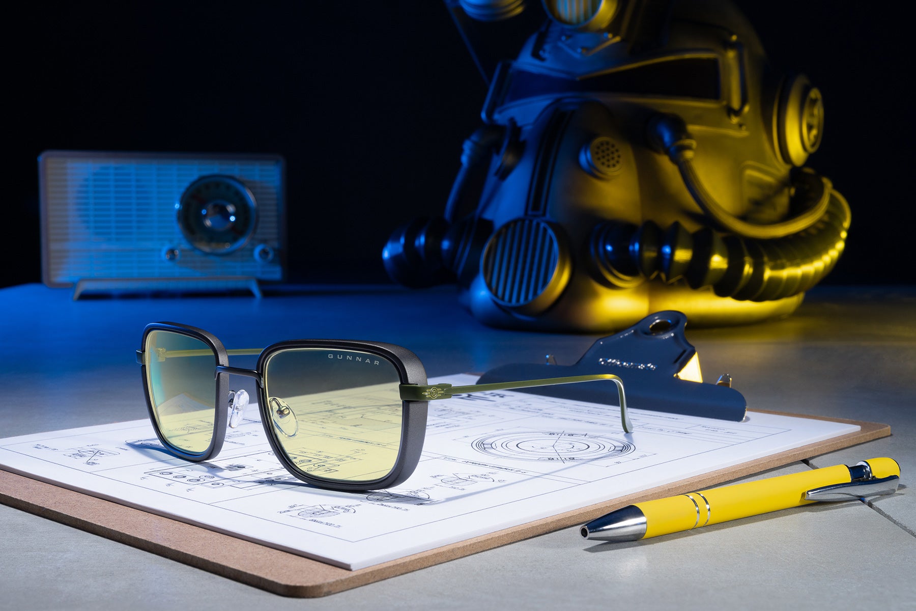 Please stand by... equip your Pip-Boy and return to the post-apocalyptic ’40s-flavored world of Fallout® with the exclusive Amazon Studios’® Fallout Vault 33 glasses. This retro-futuristic square frame style features a stainless steel and nylon front finished with olive metal temples. Equipped with durable hinges and a comfortable fit, the built-in side shields offer protection from light noise. GUNNAR’s advanced lens technology prevents digital eye strain whether playing Fallout or watching the latest episode on Amazon Prime.