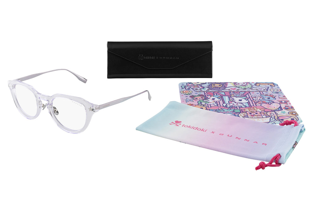 Surrounded by fun, friends and starfetti galore, tokidoki x GUNNAR invite you to the Cotton Candy Carnival. These soft lavender frames sport a modified round shape to fit a wide range of faces. With Stellina’s star on the front and the iconic tokidoki logo on the temple, you’ll enjoy a little fun along with fashion and function. Flexible spring hinges, adjustable titanium nose pads, and G-Shield® Plus lens coatings deliver GUNNAR technology at the Epic Performance level. Exclusive microfiber cleaning cloth, pouch and case feature your favorite tokidoki characters. It’s the sweetest ticket in town!