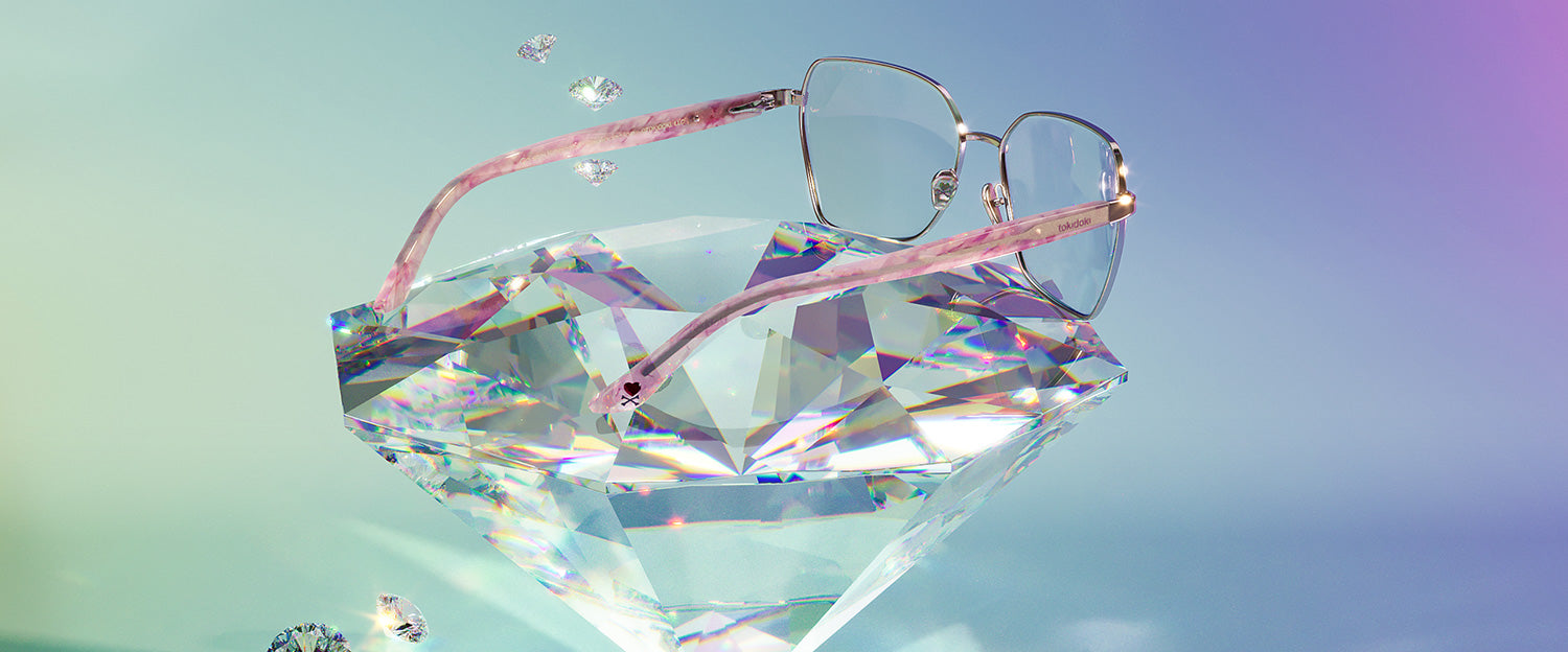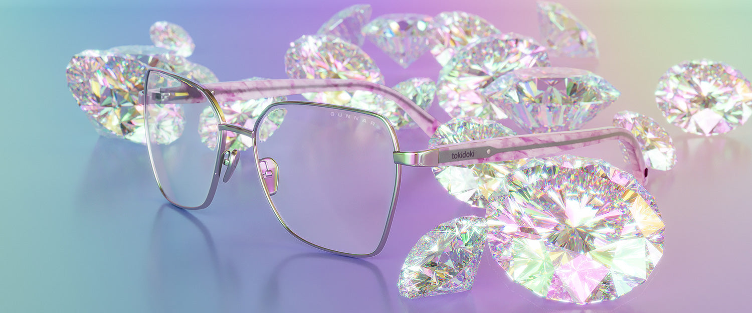 Join the enchanted tokidoki Crystal Kingdom and protect your eyes with GUNNAR! A stylish full-rim frame with a fun geometric style crafted with stainless steel and acetate temples and adjustable nose pads for a comfortable fit. The style features Amber and Clear lens tint options for digital eye strain and blue light blocking. The frame and accessories feature an all-star cast of tokidoki characters such as Donutella, Sandy, Caramella and more enjoying the company of friends. Get magical with this whimsical collaboration!