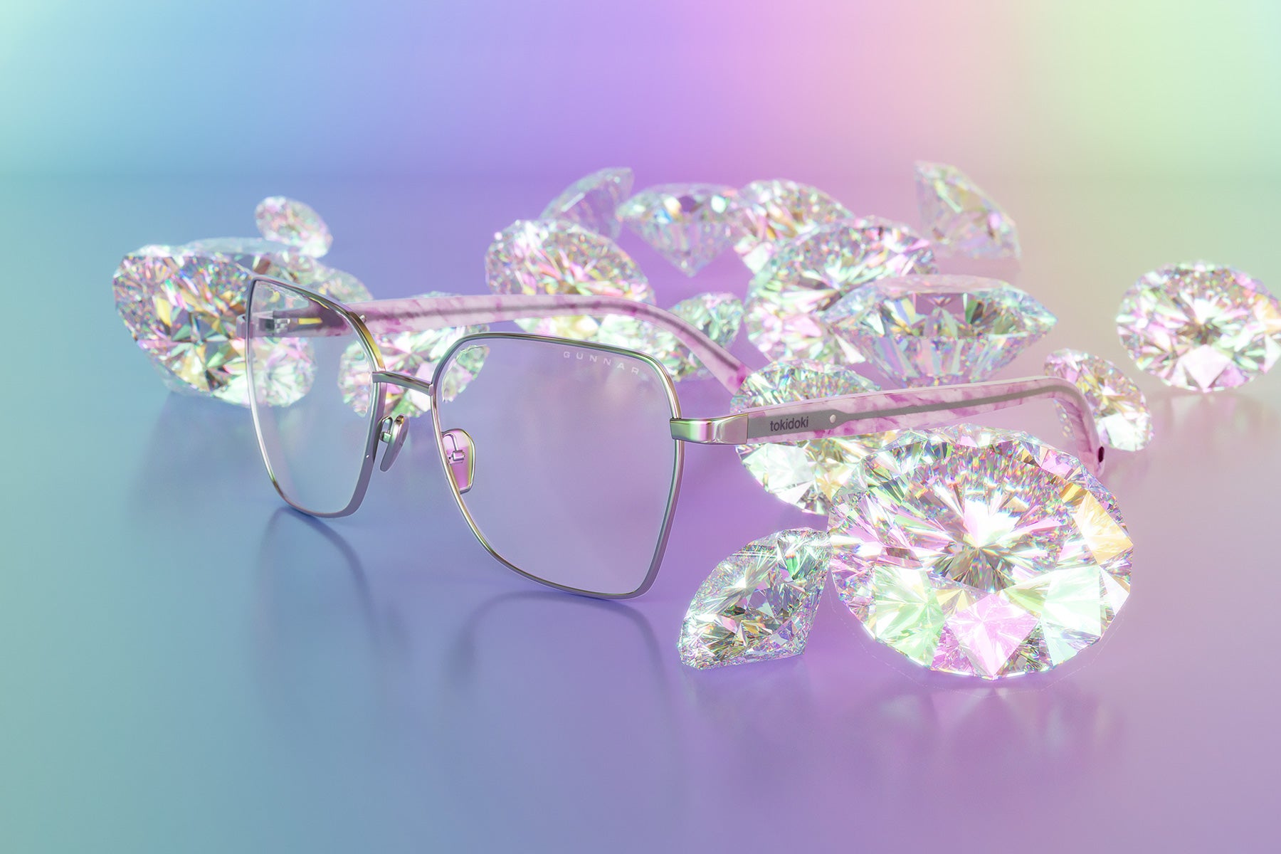 Join the enchanted tokidoki Crystal Kingdom and protect your eyes with GUNNAR! A stylish full-rim frame with a fun geometric style crafted with stainless steel and acetate temples and adjustable nose pads for a comfortable fit. The style features Amber and Clear lens tint options for digital eye strain and blue light blocking. The frame and accessories feature an all-star cast of tokidoki characters such as Donutella, Sandy, Caramella and more enjoying the company of friends. Get magical with this whimsical collaboration!