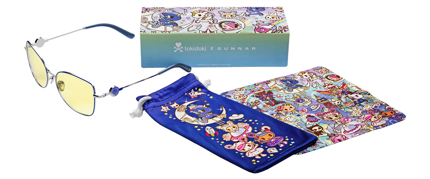 tokidoki x GUNNAR latest addition is here with Digital Princess. This is a standout piece from the Spring 2025 collection. This stunning buttery frame in whimsical periwinkle captures tokidoki's playful spirit. Crafted from durable stainless steel, the Digital Princess offers both style and comfort for all-day wear. The attering buttery shape suits various face shapes, making it a versatile addition to any eyewear collection. Whether you’re gaming or web surfng, these glasses will keep you looking amazing. Elevate your eyewear game with the Digital Princess and embrace the perfect blend of fashion and function in this extraordinary collaboration. A must-have for fans of both brands!